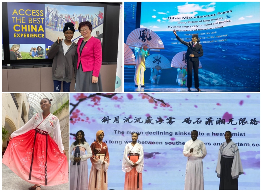 She also won 1st Prize in the 2021 Overseas students writing spring festival couplets(calligraphy) competition, 3rd Prize in the 2021 International students calligraphy, painting, talent and art competition and 1st Prize in the 2021 Jiangda Idols singing competition, 3rd place in the National foreigners singing Chinese songs competition in 2020, 3 different awards and performances during the 2022 Chinese language day celebration, 3rd prize in the 2022 Zhenjiang photography and short video competition and many more.