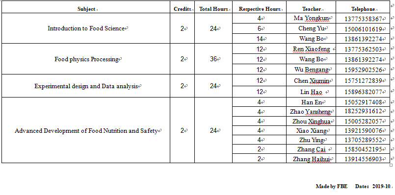 Time Table of Specialized Subjects for FBE M.sc candidates in Academic Year 2019-2020(1)