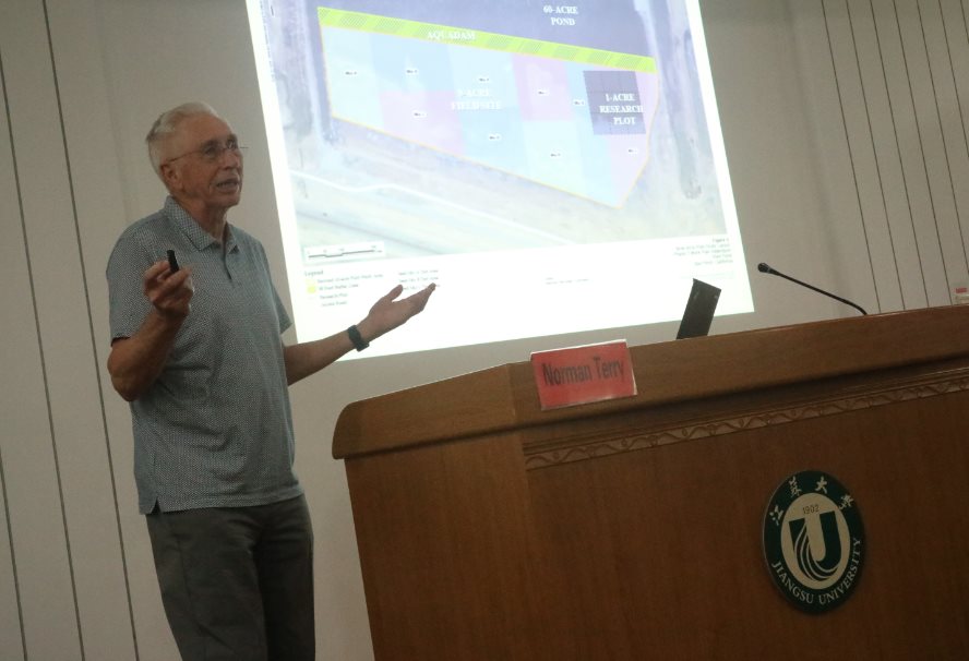 On May 15, Norman Terry,Department of Plant and Microbial Biology, University of California, Berkeley, was appointed part-time professor of Jiangsu University. At the ceremony, Ma Haile, Party Branch Secretary of School of Food and Biological Engineering, presented Prof. Norman Terry a letter of appointment, and decorated Prof. Norman Terry wth a Jiangsu University emblem. Prof. Ma Haile made a brief introduction of Prof. Terry’s Curriculum Vitae and major academic achievements. More than 100 Sino-foreign faculty members and students of the school attended the ceremony. After the ceremony, Prof. Norman Terry made a lecture entitled A Personal Approach to Manuscript Writing and Other Aspects of Research. After the ceremony, Prof. Terry made an academic lecture entitled Phytoremediation of Contaminated Soil and Water. He also visited museum of our school.