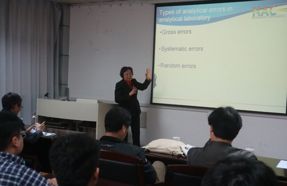 On Apr. 22, Wei G. Hansen from NIR application consulting co., LTD, visited Jiangsu University and made a lecture titled Statistics in NIR. In 2013, she was appointed to the visiting professor at Jiangsu University. Prof. Zhou Jun, Secretary of School of Food and Biological Engineering, and some faculty members and Sino-foreign students of the school attended the lecture. Introduction to Dr. Wei G. Hansen: Dr. Wei G. Hanse has many years of Analytical R&D department managerial experiences and International company technical laboratories coordination and management experiences. She is a senior research scientist of Imperial Chemical Industries (ICI) of UK. Her personal Research field is in applications of Near Infrared Spectroscopy (NIR) and Chemometrics. She is an active member of the world NIR society since 1992. Many publications covered the field from NIR applications, all sorts of different modern analytical technologies and R&D laboratories management. She used to be a member of the International Analytical Laboratory Managers Association (ALMA), with publications of scientists & laboratory management. Additionally, she is a member of the organisation committee of the First ALMA Conference of Europe in 2000, organized and edited all the presentations of this conference.