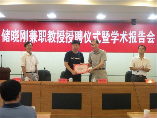 Professor Chu Xiaongang , who worked in inspection and quarantine research institute of China, was engaged as a part-time professors of our University in 2011-8-30 in Meeting Center.