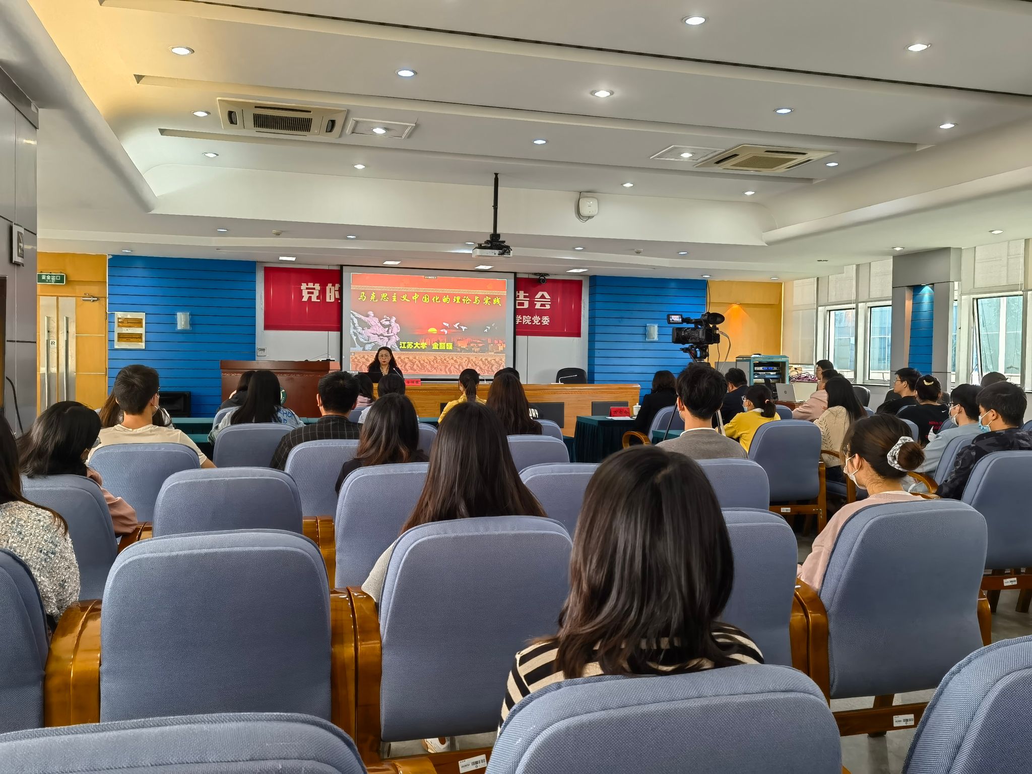 党委举办“党的创新理论”宣讲报告会。校思想政治工作研究院执行院长金丽馥教授和院关工委退休教师李国文教授受邀作主题报告,学院全体师生党员、入党积极分子300余人参加本次宣讲活动。