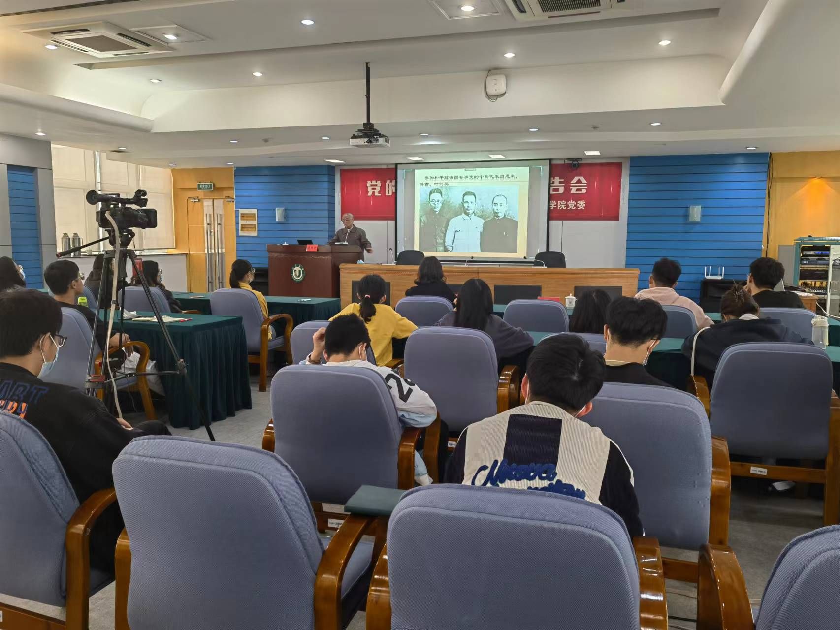 李国文教授讲授的主题为:深切缅怀敬爱的周总理,深刻领悟伟大的建党精神。他通过分享周总理在革命道路上的一些感人故事,带领党员同志们一起感悟领会周总理的崇高精神、高尚品质以及伟大风范,周总理和革命前辈们的伟大建党精神将永远激励我们坚定信心、勇毅前行。