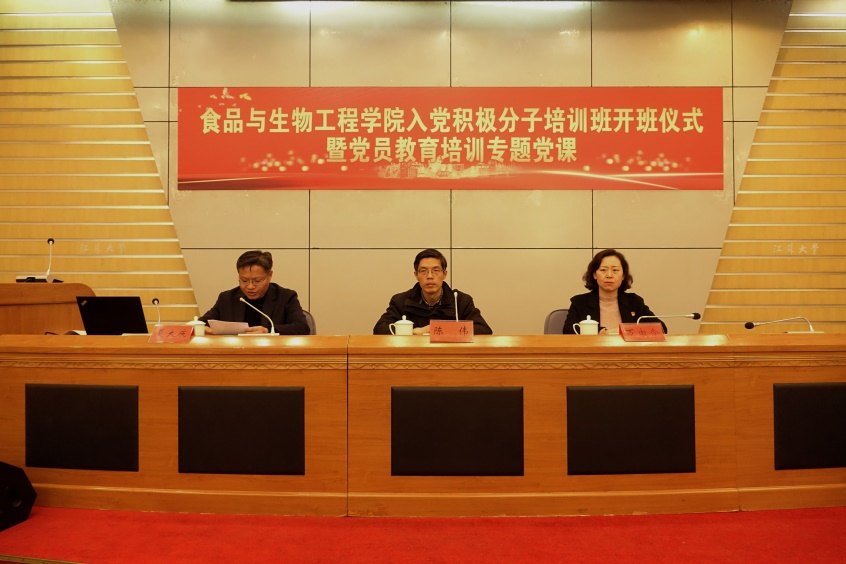 入党积极分子培训班开班仪式在会议中心第一报告厅举行。校党委组织部副部长陈伟,校党委宣传部副部长王玉忠,院党委书记万由令,学院师生党员及入党积极分子参加开班仪式。开班仪式由学院党委副书记夏大庆主持。