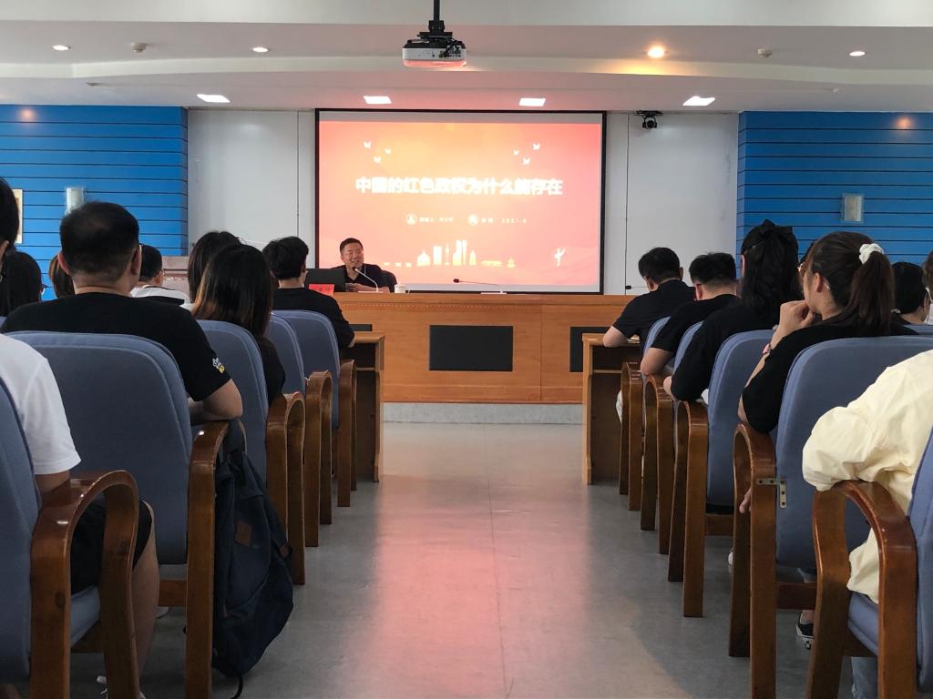 分党校邀请后勤处杨春峰副处长作《中国的红色政权为什么能够存在》专题讲座,学院入党积极分子和部分学生党员聆听了讲座,讲座由院党委副书记夏大庆主持。
