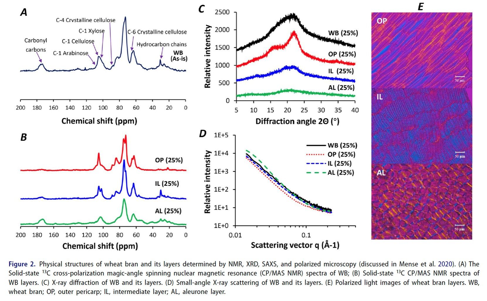 小麦麸皮是我国和世界的大宗主粮副产物,在我国年产量超过2500万吨,是目前加工全麦食品、膳食纤维及功能性多糖的主要原料。然而,目前对小麦麸皮结构层的物理结构、化学组成、电学和机械力学等物理特性缺乏重视和系统综述,造成了当前小麦麸皮加工效率低下,资源浪费严重。本文从麸皮结构层的角度阐述小麦细胞壁阿拉伯木聚糖的结构、化学组成、层间分布、分离提取新技术、营养功能特性及食品应用。此两篇综述论文创新性地从多层复合结构层的角度,系统综述了小麦麸皮及其细胞壁的物化特性和加工利用的理论和技术进展,将为小麦麸皮等谷物麸皮的创新增值加工和食品化利用提供重要理论技术指导。