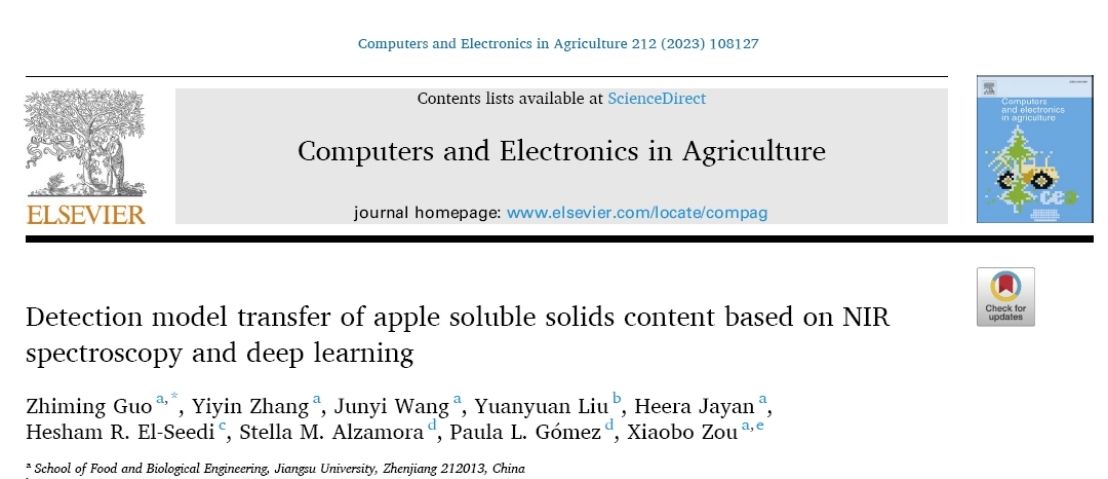 近日,郭志明教授课题组在农业科学领域Top期刊Computers and Electronics in Agriculture(Q1,园艺类第1)上发表了题为“Detection model transfer of apple soluble solids content based on NIR spectroscopy and deep learning”的研究论文。做爱片