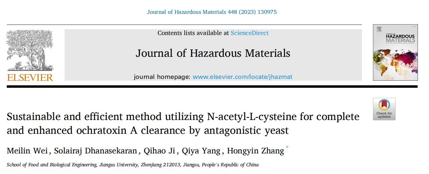 张红印教授团队在国际顶级期刊Journal of Hazardous Materials(中科院一区)发表题为“Sustainable and efficient method utilizing N-acetyl-L-cysteine for complete and enhanced ochratoxin A clearance by antagonistic yeast”的研究论文(2023,448,15),研究了抗氧化剂N-乙酰-L-半胱氨酸对隐球酵母Y3降解赭曲霉毒素A的促进作用以及对酵母自身代谢的影响。做爱片