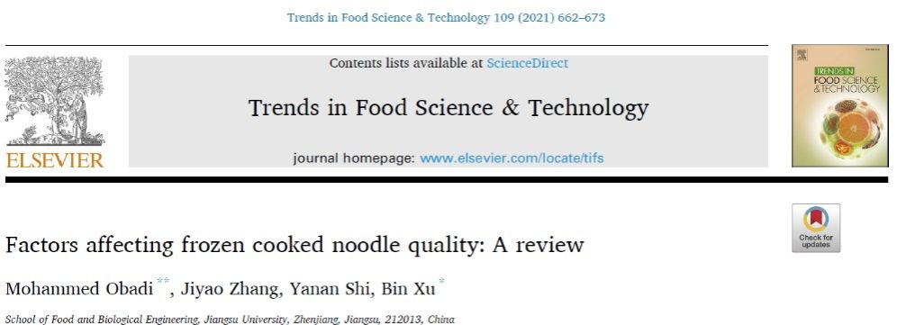 徐斌教授课题组标题为“Factors affecting frozen cooked noodle quality: A review”(影响冷冻熟面品质的因素:综述)的综述文章在国际食品领域TOP期刊(No.1)《Trends in Food Science & Technology》发表。做爱片