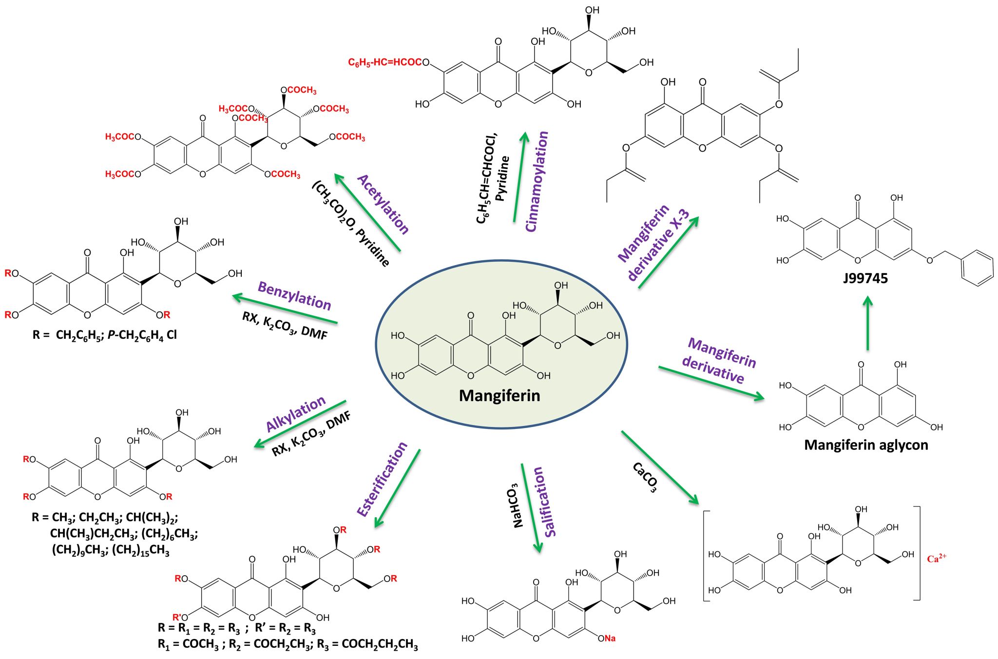芒果苷广泛地分布在不同植物的根、茎、叶中,生长环境、发育阶段、收获季节、储藏方式等影响芒果苷的含量,了解其分布和影响因素对提高芒果苷的回收率提供了理论支持,并促进以芒果苷为主的营养或膳食补充剂的开发。芒果苷的吸收主要发生在小肠,通过被动扩散的方式进行,在胃肠道的不同区段的吸收能力不同。此外,还需要更多的研究来评估芒果苷的吸收代谢,其代谢物可能会影响芒果苷的生物活性。芒果苷的纳米颗粒、微粒化、成盐作用、与天然/合成化合物的络合以及与其他成分的联合给药,是提高芒果苷生物活性及其生物利用度的主要方法,并且大部分研究已申请专利。但是在开发出高可溶性和高生物利用度的天然健康产品或食品补充剂方面仍存在一些限制,例如成本高,产量低等。目前,芒果苷尚未作为一种广泛使用的临床药物,并且关于芒果苷临床疗效的文献有限,因此芒果苷的药代动力学和安全性评估需要进一步研究。