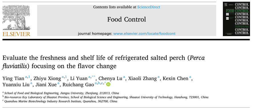 高瑞昌教授团队在国际期刊《Food Control》(Q1,IF2025=5.6)上发表题目为“Evaluate the freshness and shelf life of refrigerated salted perch (Perca fluviatilis) focusing on the flavor change”的研究型论文。做爱片