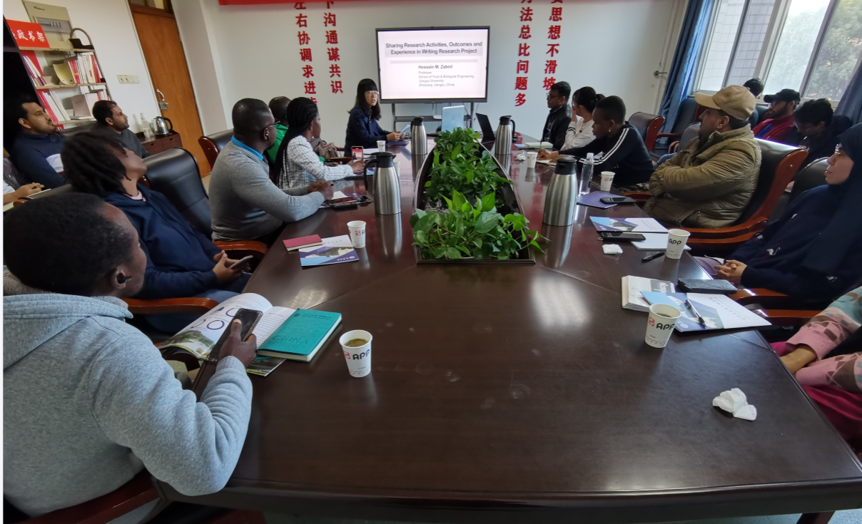 在302会议室举行外籍教师,博后和留学生交流研讨会,会议主题是“国家和省级基金项目申请策略与技巧”。会议由欧阳琴教授主持,外籍教师Hossain M.d Zabed和Dhanasekaran Solairaj做学术报告,学院三十余位外籍教师、博后和留学生参加了此次交流活动。
