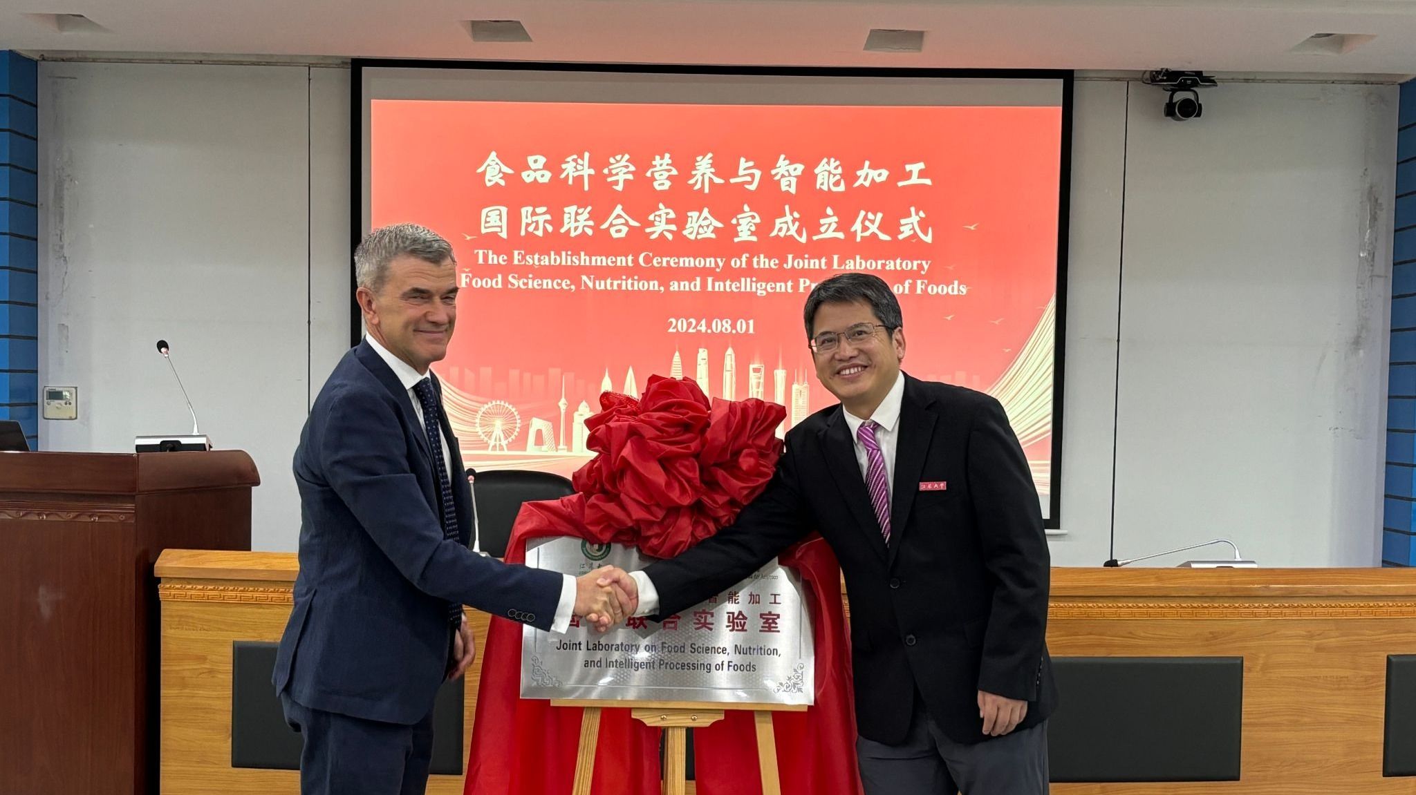2024年8月1日上午,食品科学营养与智能加工国际联合实验室在我校揭牌成立,校党委常委、副校长邹小波出席活动。会议由校国际处处长崔勇主持,做爱片 教师、中外学生80余人参加了报告会。