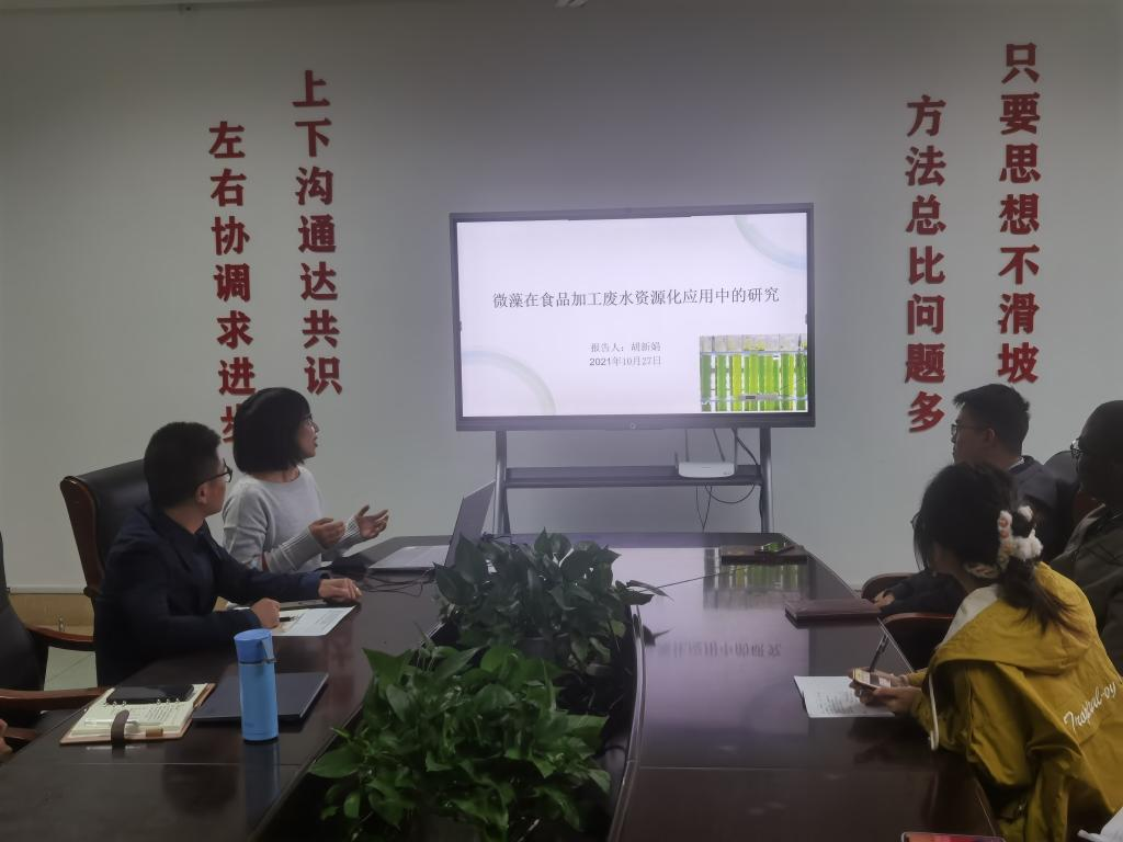 孙全才教授主持了本次交流会。学院六位青年教师郑开逸、崔溢、胡新娟、李海腾、陶宏迅、Solairaj分别作了题为《基于化学信息学的近红外光谱数据挖掘》、《关于促进海洋微藻中高附加值化合物的生物合成以及产生机理的研究》、《微藻在食品加工废水资源化应用中的研究》、《碳水化合物结构与功能:从生物合成到食品》、《红景天治疗溃疡性结肠炎的作用机理研究》、《Postharvest pathogenesis and biological control of grape-fungal infections》的报告,从研究背景、研究现状、研究内容、技术路线、应用前景等方面分享了自己近期的科研成果。参会老师针对兴趣点纷纷提出问题,并与作报告的老师展开热烈的讨论和交流。