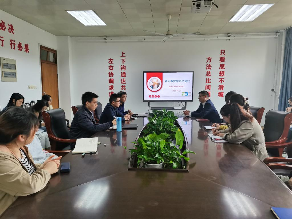 在食生楼302举行2021年度第二次青年教师学术交流会,最近五年留学归国的三十余位老师参与了本次交流会。