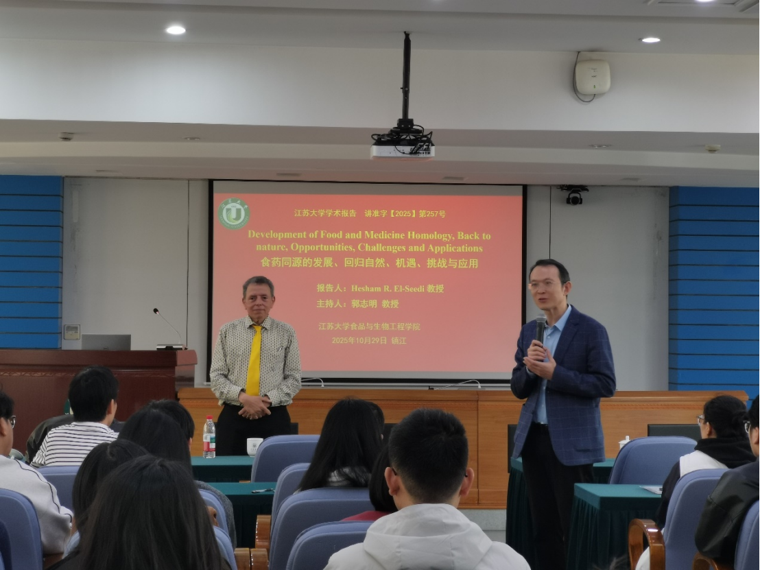 El-Seedi教授长期从事天然产物生物活性物质的合成、分离、结构鉴定及安全性评价研究,曾就职于乌普萨拉大学、瑞典皇家理工学院及斯德哥尔摩大学等多所知名高校,科研成果丰硕,发表学术论文400余篇,涉及《The Lancet》《Scientific Reports》《Journal of Natural Products》《Food Chemistry》等国际权威期刊。其研究方向主要包括食药同源植物化学、天然活性成分分析等领域。在讲座中,El-Seedi教授以自然为核心理念,深入阐述了通过跨学科研究推动食品与药物同源性科学发展的重要意义。他系统分析了传统食药同源活性成分的健康功能,结合代谢组学与分子生物学技术,探讨了抗氧化、抗炎及调节肠道菌群等关键机制。El-Seedi教授指出,未来应将绿色化学与人工智能技术相结合,助力食品与健康产品行业的可持续创新与升级。